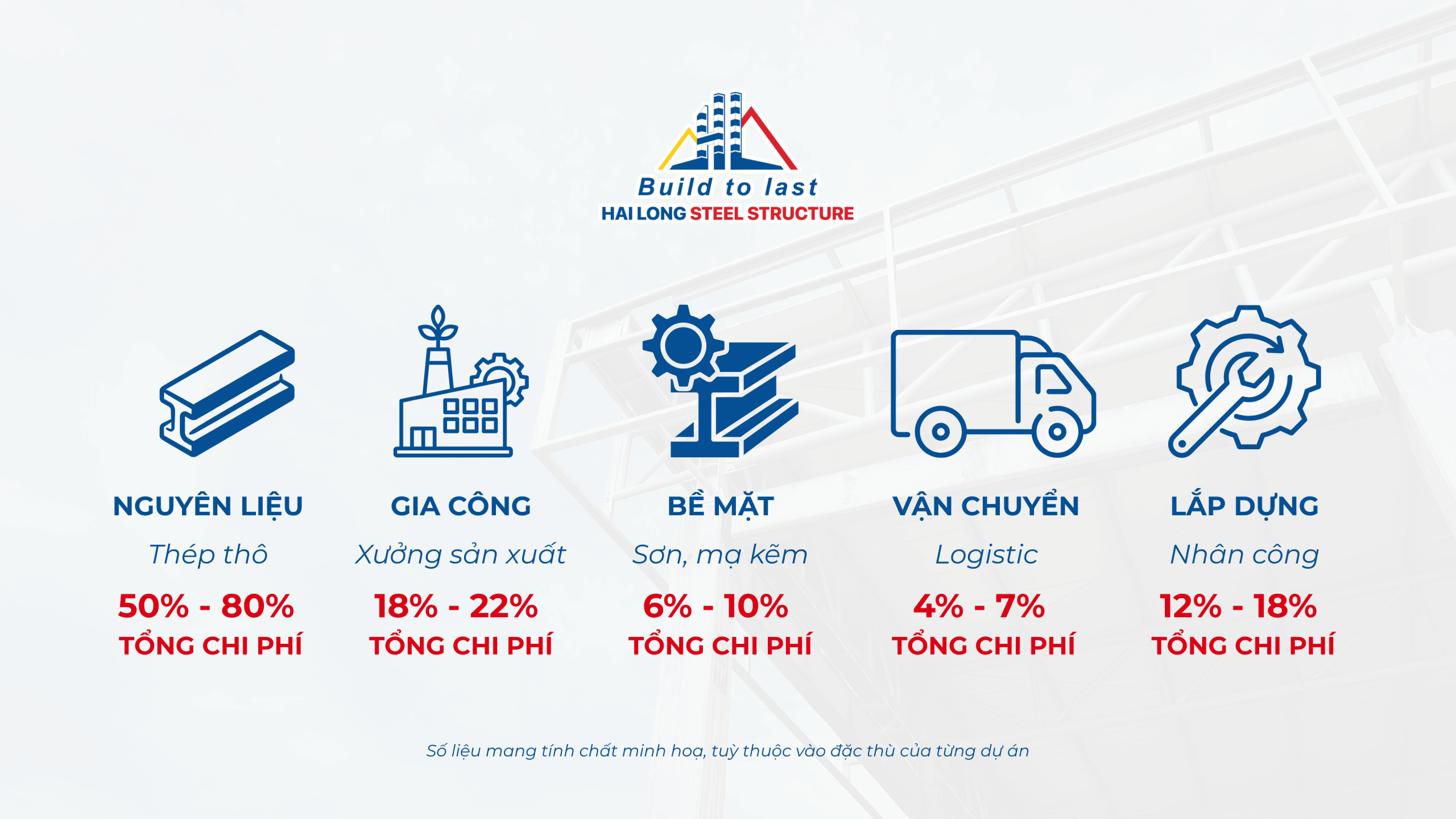 Tỷ lệ biến động tuỳ quy mô, địa bàn và độ phức tạp. Nhà xưởng tại vùng sâu sẽ có chi phí logistic cao hơn; công trình có nhiều chi tiết phức tạp sẽ đội chi phí gia công. Nắm được cơ cấu này, chủ đầu tư sẽ biết chính xác cần tác động vào khâu nào để giảm tổng chi phí hiệu quả nhất.